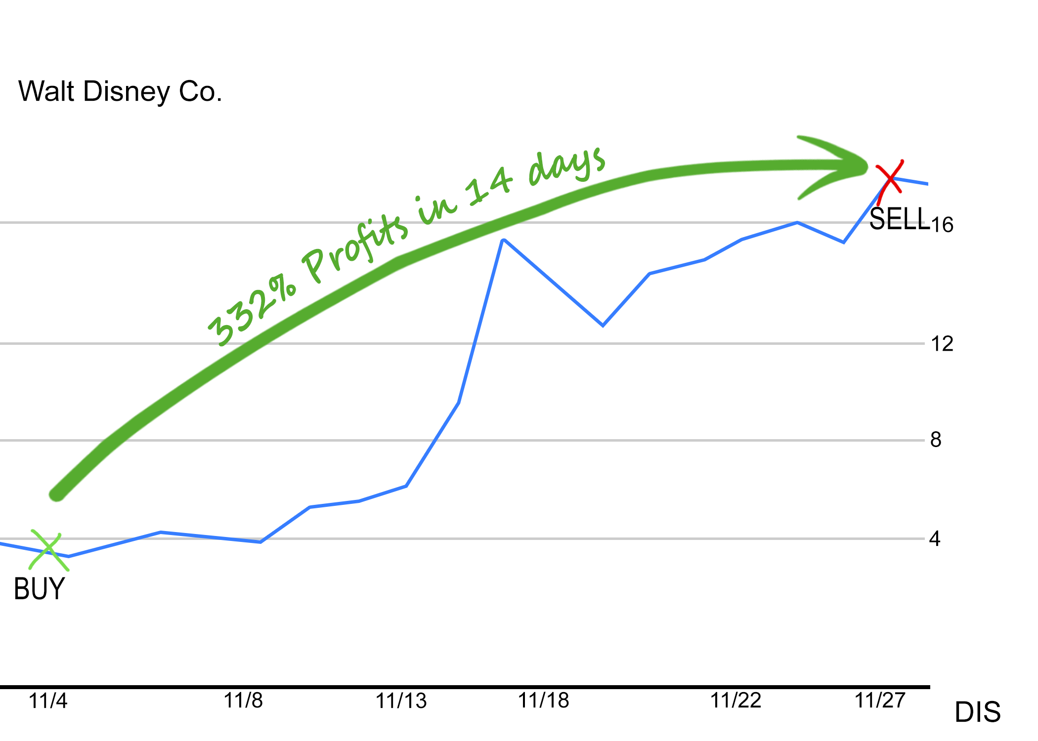 Allowing our trade to pull in 332% in just 2-weeks!