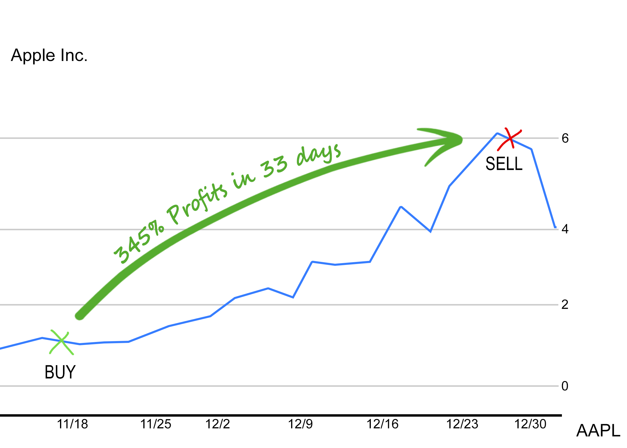 We opened a trade in Apple and closed it 33 days later for a 345% profit!